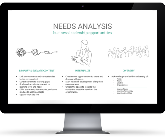 Managing the project, meeting the deadlines, and communicating change are strategic parts of our design thinking learning and development process.